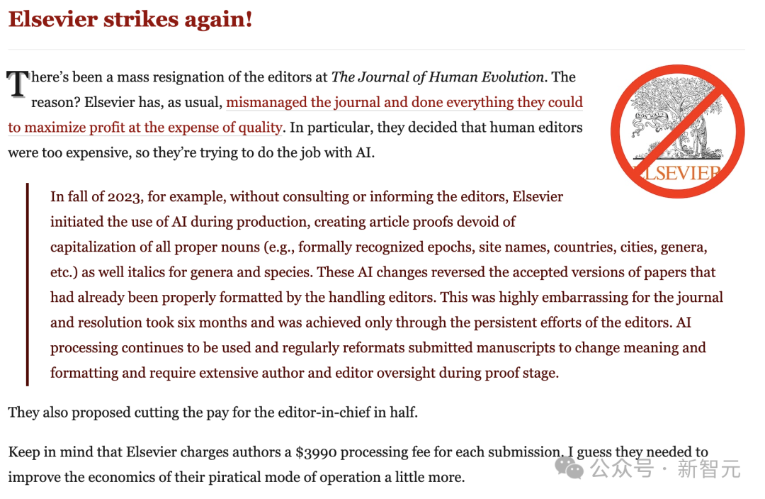 【新智元导读】一场轰动学术界的地震,就此爆发了!全球顶级期刊《人类进化杂志》竟暗中用AI篡改论文,计划砍掉超一半副主编。JHE编委会对此不满集体辞职,揭开了这家出版巨头的重重黑幕。