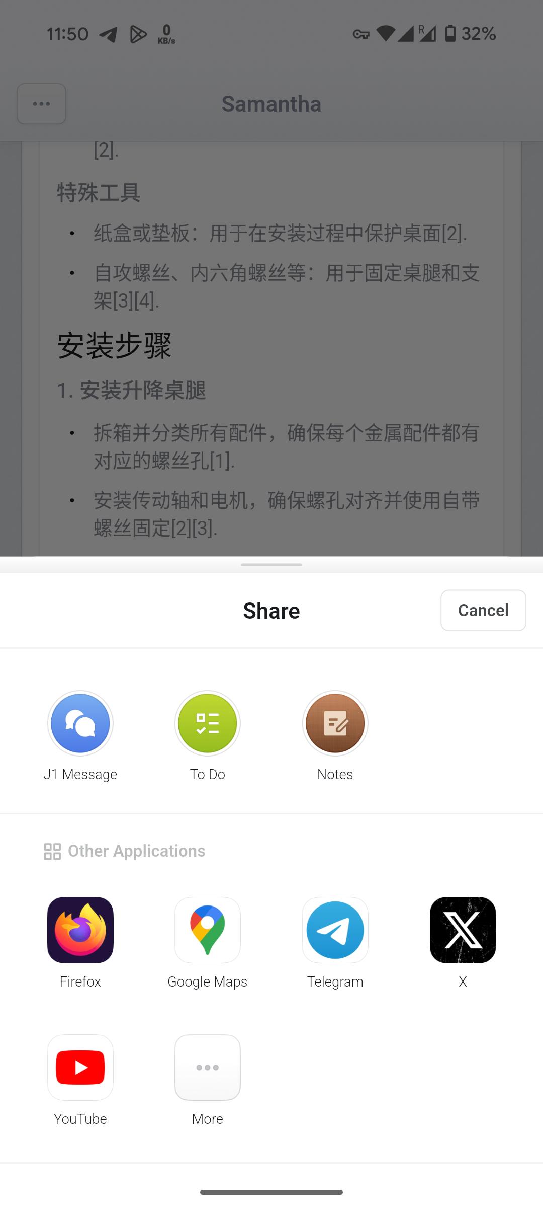 当然,实际场景中用户不一定每一次提问都会表达完整的意图,更有可能是先询问信息,然后视情况将 AI 回答保存为笔记和待办清单。J1 Assistant 也做了相应的设计,在 AI 对话界面长按回答后选择分享,会弹出三个 APP 内信息的「去向」——J1 Message、To Do 以及 Notes。