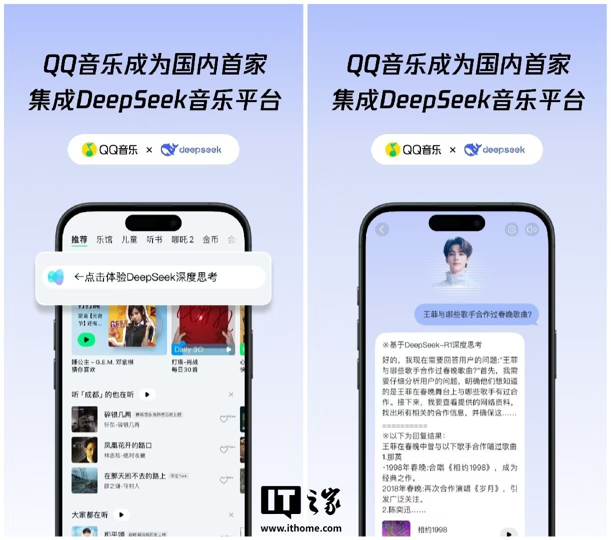 IT之家 2 月 11 日消息,QQ 音乐昨日宣布旗下自研 AI 助手已完成对 DeepSeek-R1 完整版大模型部署,这也是 DeepSeek 首次在音乐平台的应用。