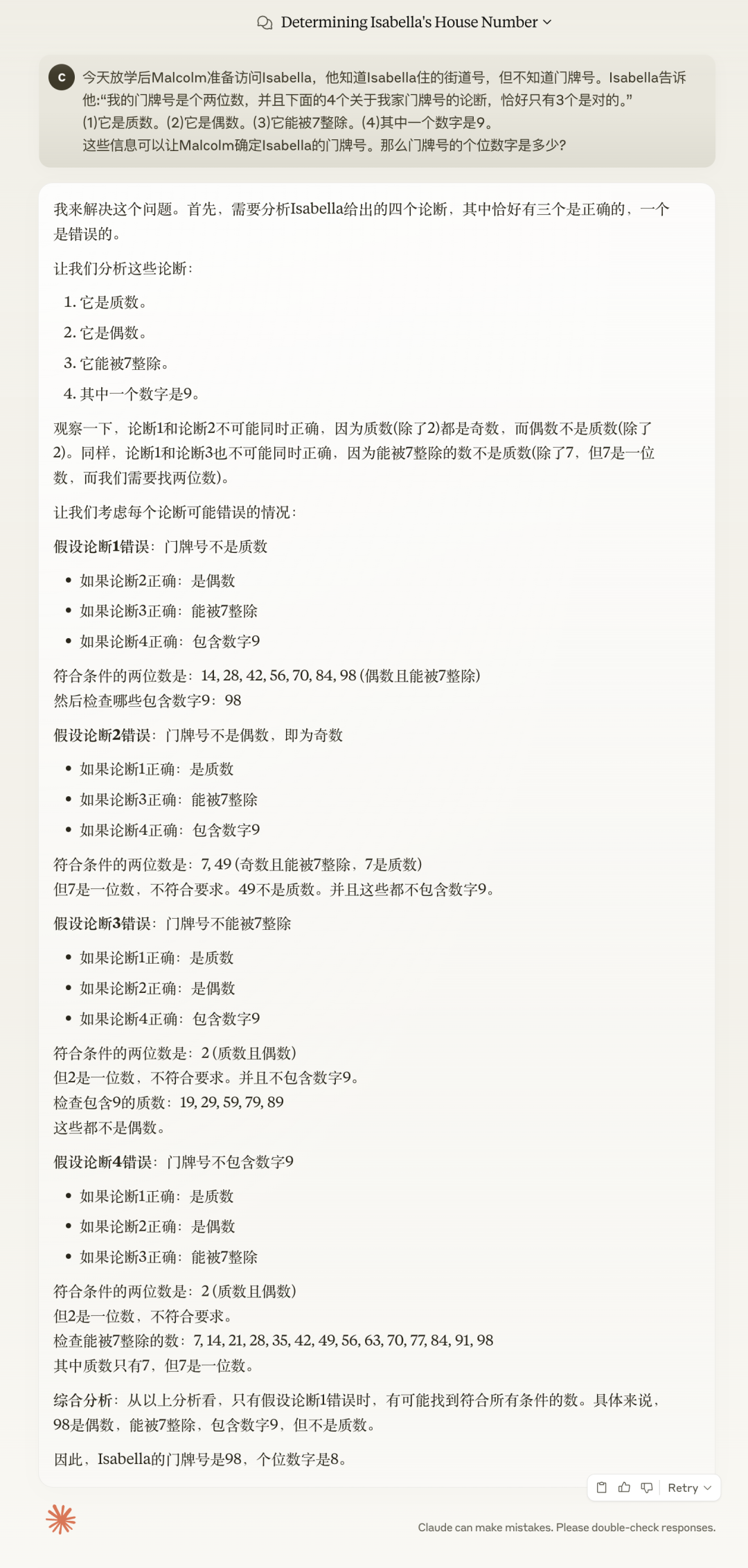 而同样的题目,我又问了今天的另外一位主角 Claude 3.7 Sonnet 。