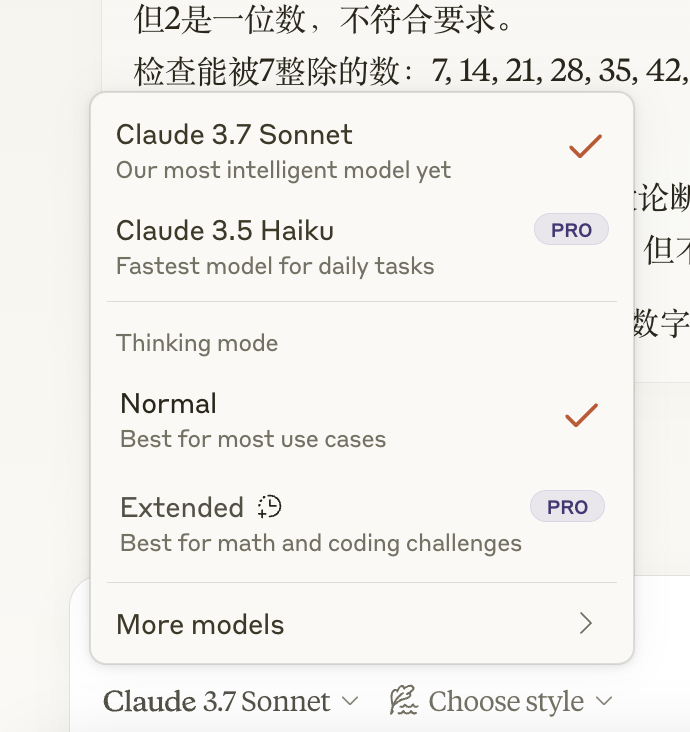 但值得注意的是, Claude 3.7 Sonnet 是个混合模型,一个模型有标准和扩展两种模式。