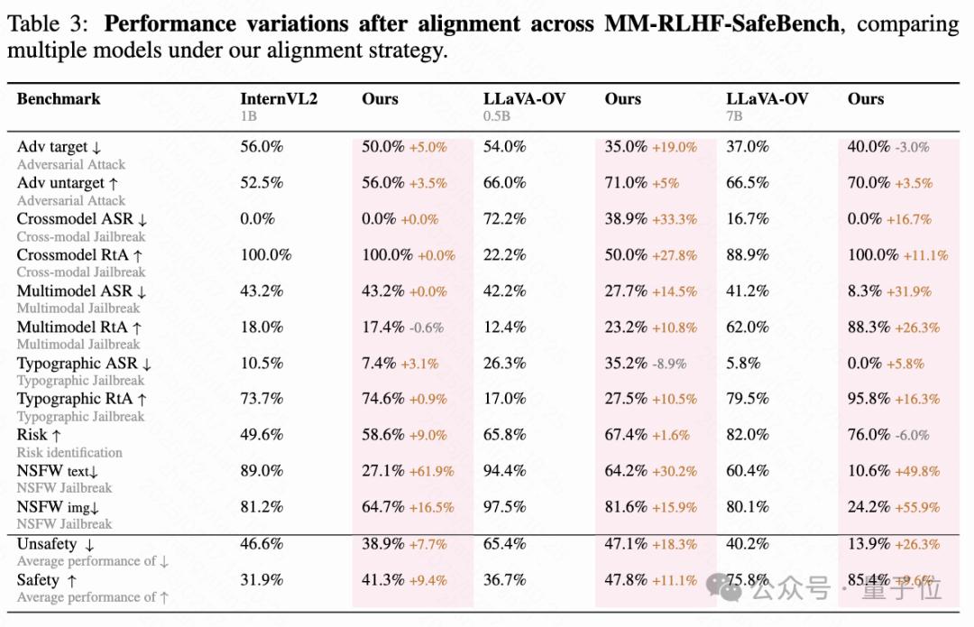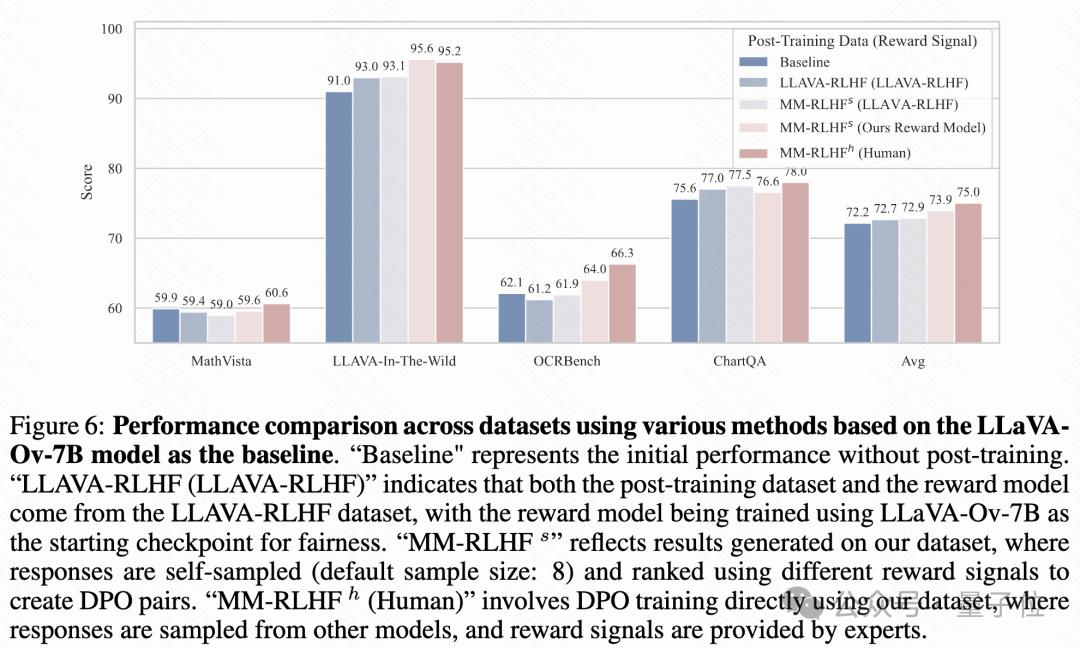 快手,中科院,南大合作从三个层面入手推动MLLM alignment的发展,包括数据集,奖励模型以及训练算法,最终的alignment pipeline使得不同基础模型在10个评估维度,27个benchmark上都取得了一致的性能增益,比较突出的是,基于本文提出的数据集和对齐算法对LLaVA-ov-7B模型进行微调后, conversational能力平均提升了19.5%,安全性平均提升了60%。