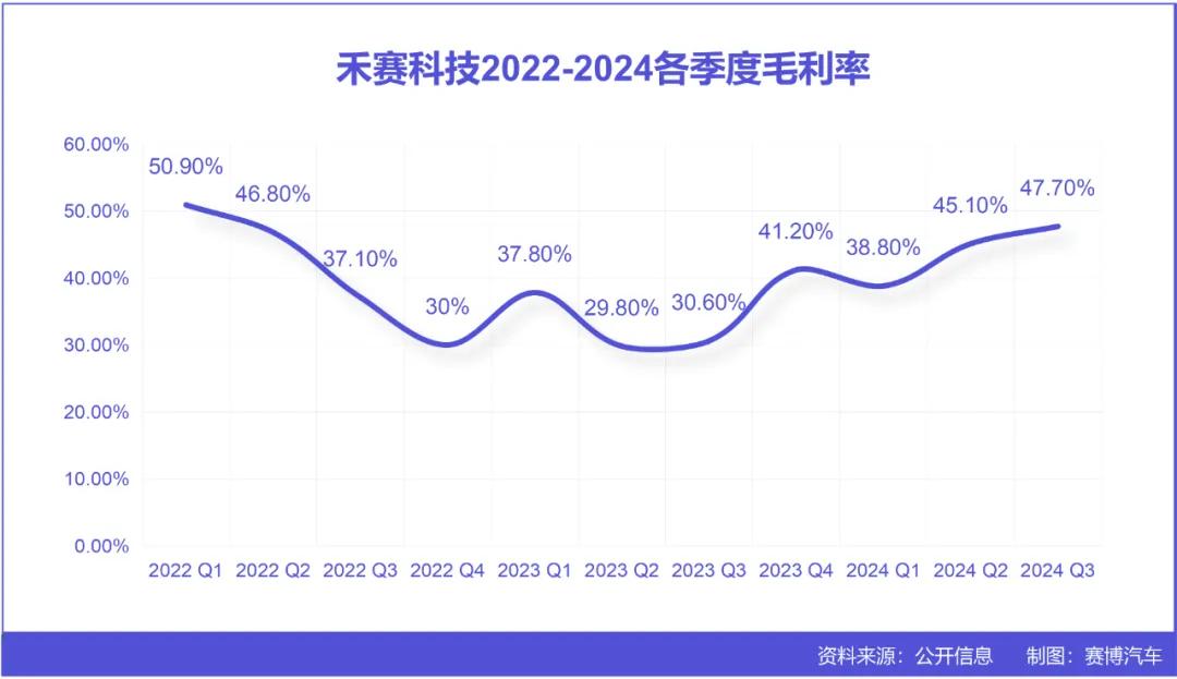 根据财报,2024年三季度,速腾聚创的毛利率为17.5%,相比去年同期的7.7%增长明显,但远不如禾赛科技的47.7%。