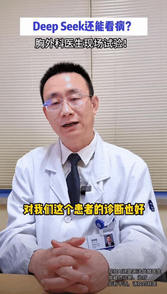 浙大二院胸外科副主任范军强主任医师,也分享了一个「DeepSeek 诊断肺结节」短视频。