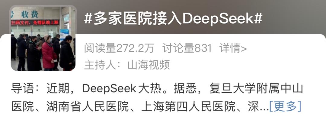 此外,不少医院也掀起了一波 DeepSeek 接入潮。