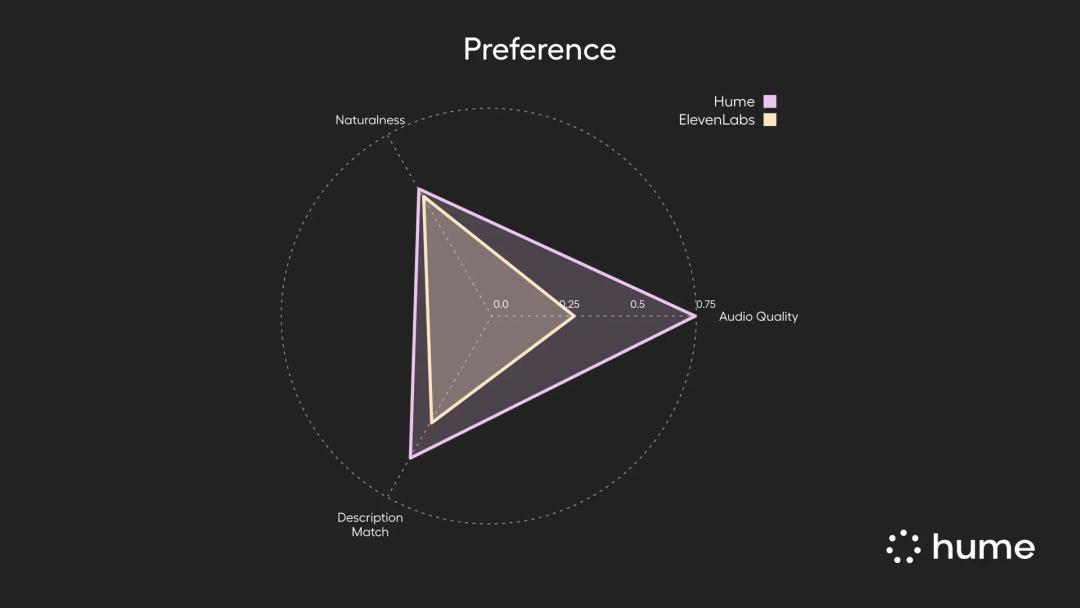 Hume AI AI对Octave开展了内部评估,将该大模型与业内领先的AI文生语音大模型ElevenLabs进行对比。