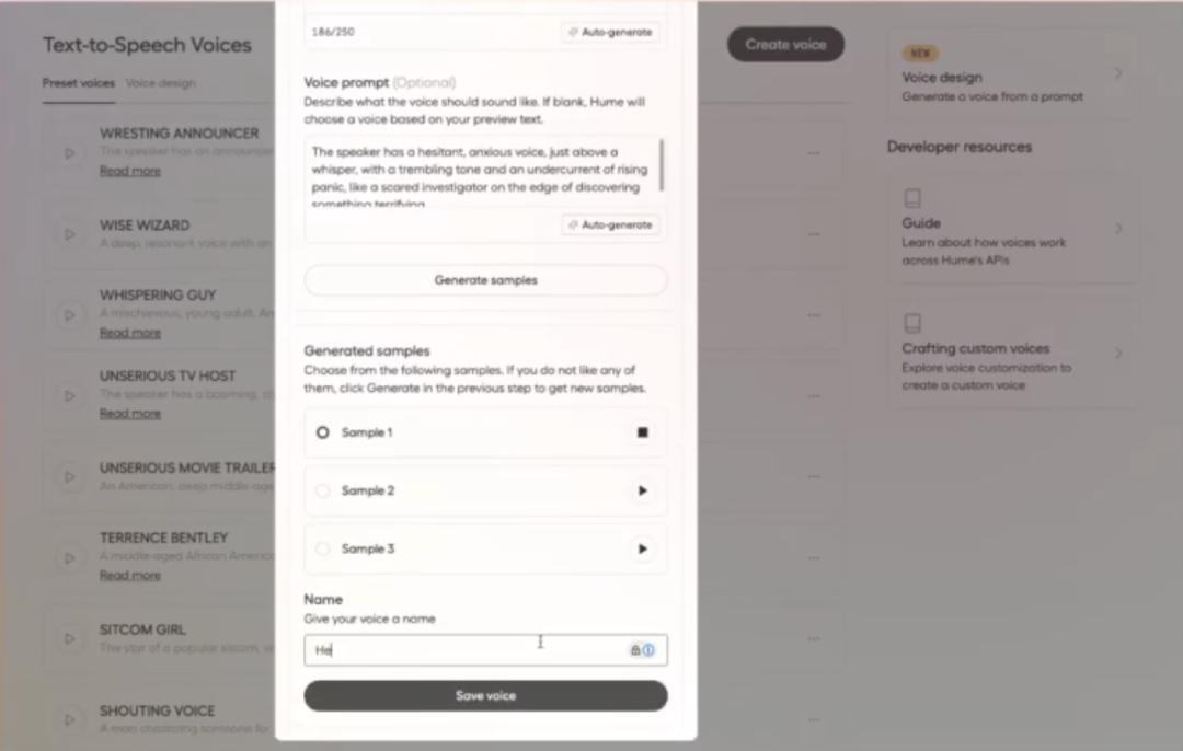 基于提示词或剧本,Octave能够生成各种设定的AI语音。这是由于它会自动解析一段文字内容的含义和风格,包括人称代词、简称、用词等等,从而生成一段与角色相符的连贯语音内容。