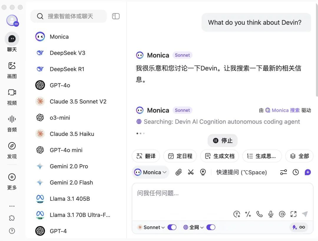 Devin毫无疑问是一个创新的产品,也有很多报道,但问题是——为什么只有Monica团队想到要学习借鉴并且第一个把它做起来了?