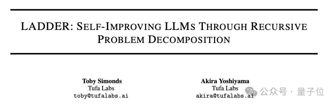 LADDER论文来自小型独立研究团体Tufa Labs,论文已上传到arXiv。