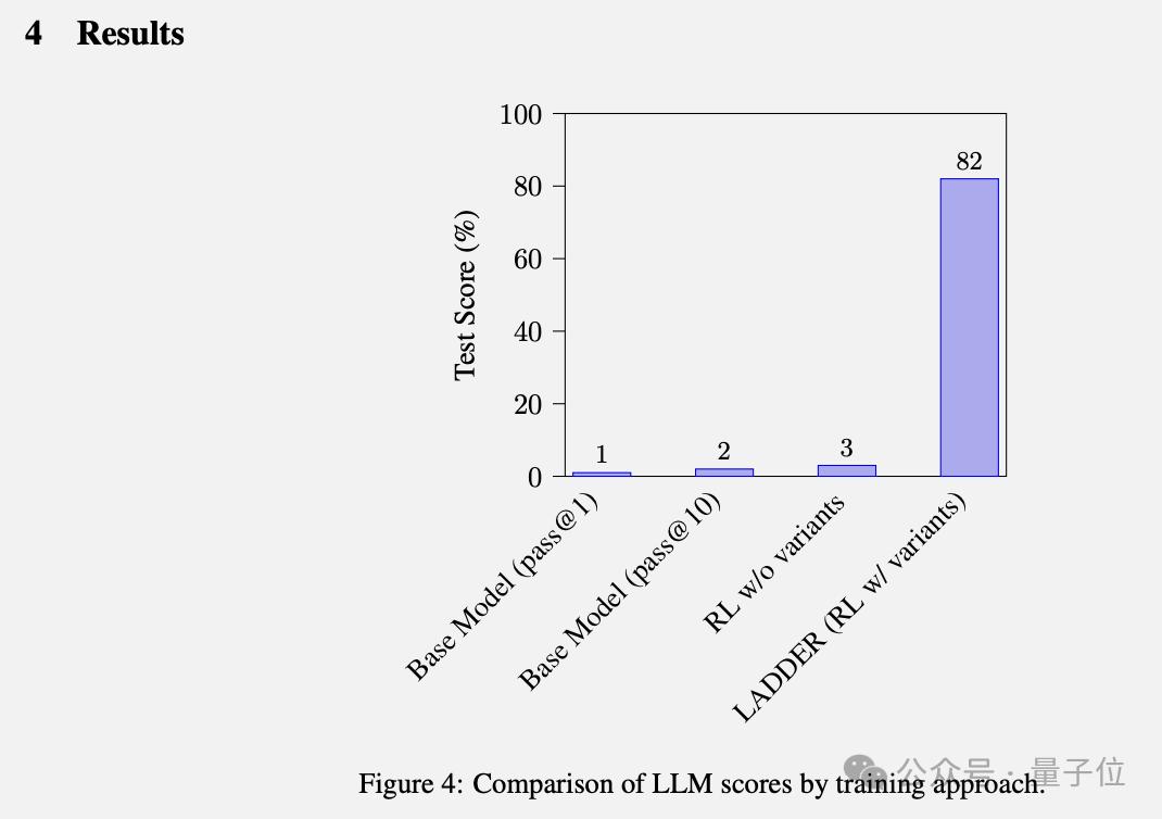 通过LADDER,一个原本只有1%准确率的Llama 3.2 3B模型,在没有任何人工标注数据的情况下,解题准确率飙升至82%。