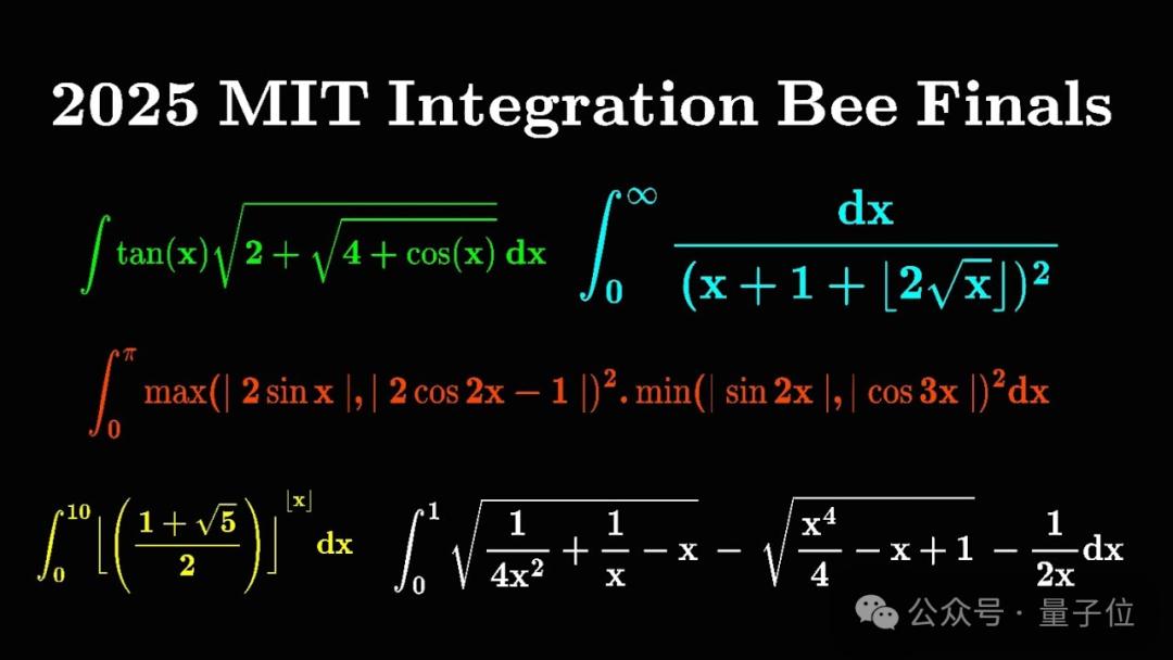 注意,不是积分制的比赛哦,是只做微积分中积分题的比赛,MIT的数学高手每年都会挑战一次,题目像这样:
