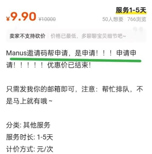据媒体报道,目前manus邀请码的售价最高被炒至10万元,甚至帮忙代写“邀请码申请邮件”也被人开发成了有偿业务。
