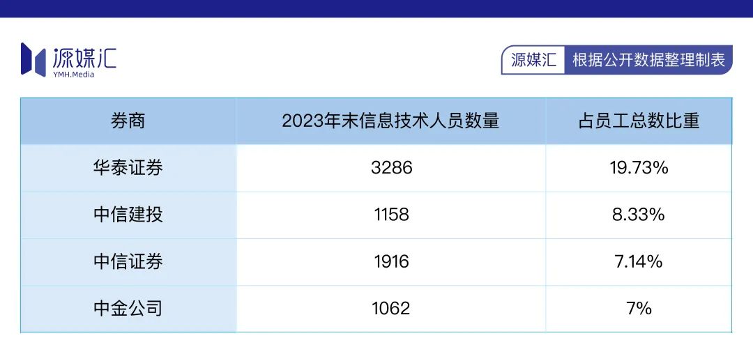 在信息技术人员数量方面,华泰证券在“三中一华”中也明显高于其他几家。