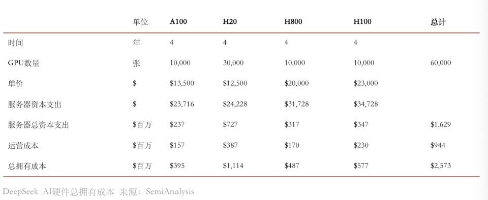 注意,这些只是比较保守的预估,与国外技术媒体SemiAnalysis对DeepSeek GPU数量的预估在同一数量级。