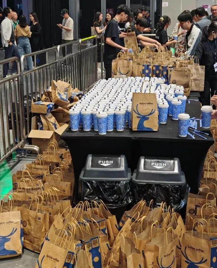 图|2000杯瑞幸送到荣耀发布会现场