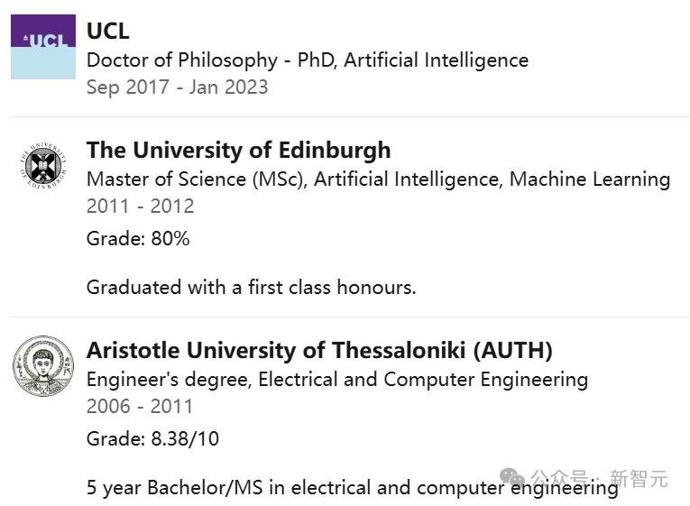 值得一提的是,他在DeepMind期间还获得了伦敦大学学院AI博士学位。
