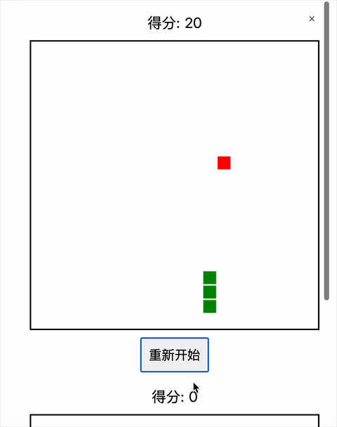 蛇会自动向前移动,并在吃到红色的食物时增长并增加得分。