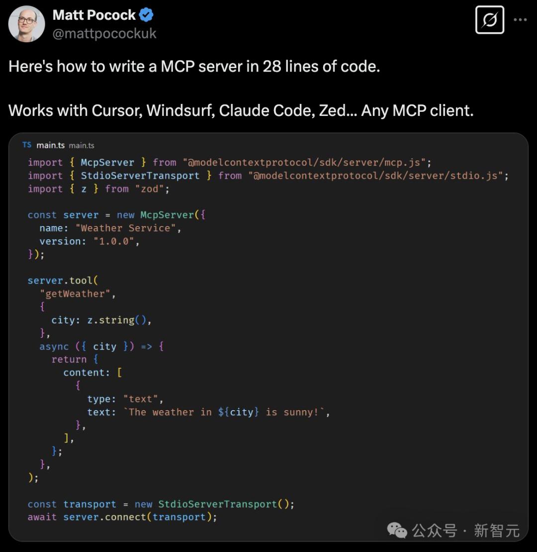 Total TypeScript的作者Matt Pocock仅用28行代码就开发出了一个MCP服务器。