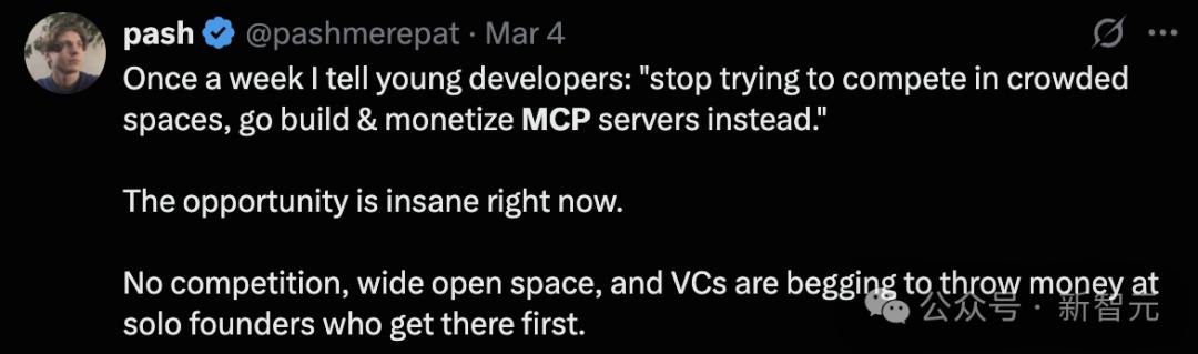 大模型爆火之后,提示工程师成为新型职业。如今,已经有大佬建议,开发者们赶快去构建商业化MCP服务器吧。