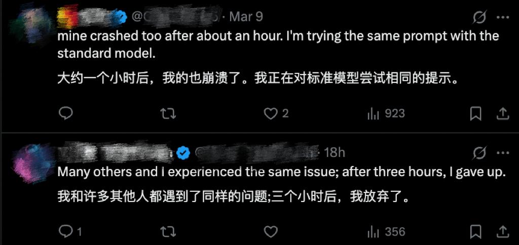 其推文中提到,他认为这可能与服务器不堪重负有关,他将尝试更简单的提示或使用标准模型。
