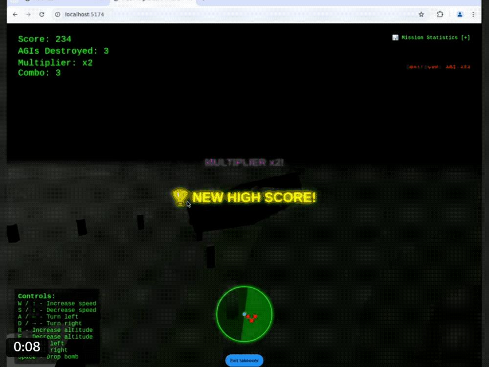 今日上午,AI博主Bilawal Sidhu认为Manus非常擅长编码游戏。他只给出了这个提示词:“编写一个ThreeJS游戏,在游戏中,你控制一架F-117夜鹰,可以在数据中心投掷炸弹,并根据你摧毁了多少失控的AGI来积累积分。”就得到了下方的游戏效果: