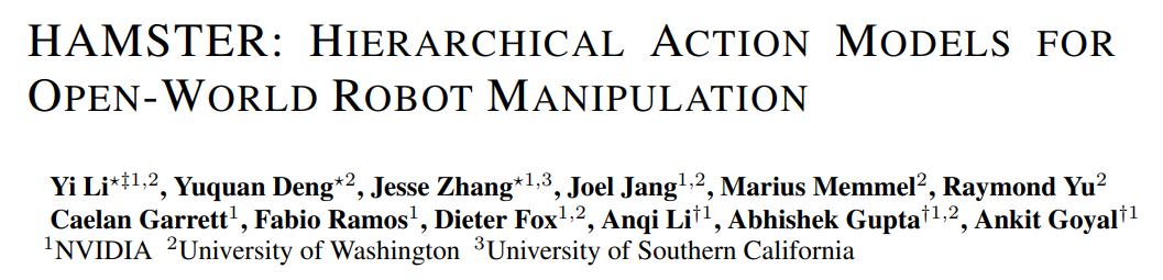 论文标题:HAMSTER: Hierarchical Action Models for Open-World Robot Manipulation