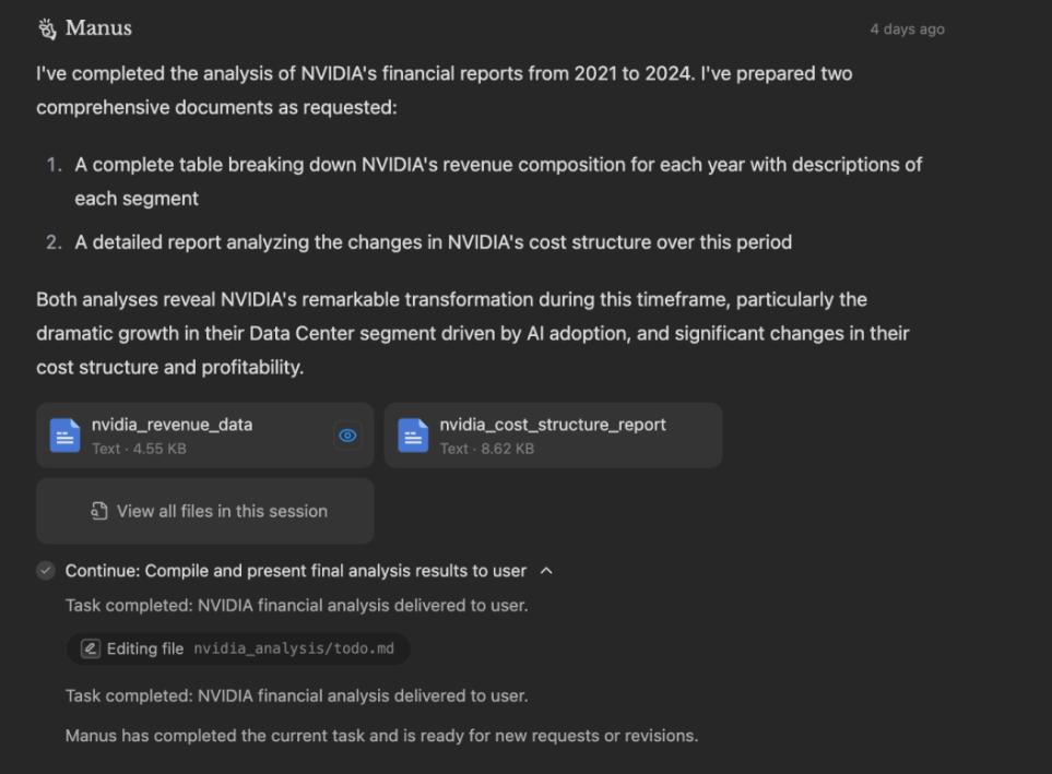 在企业级应用方面,某跨境电商客户利用Manus完成了竞品分析、广告投放、物流调度等全流程工作,效率提升了400%。这一显著的成效充分展示了Manus在实际业务中的强大执行力和价值。