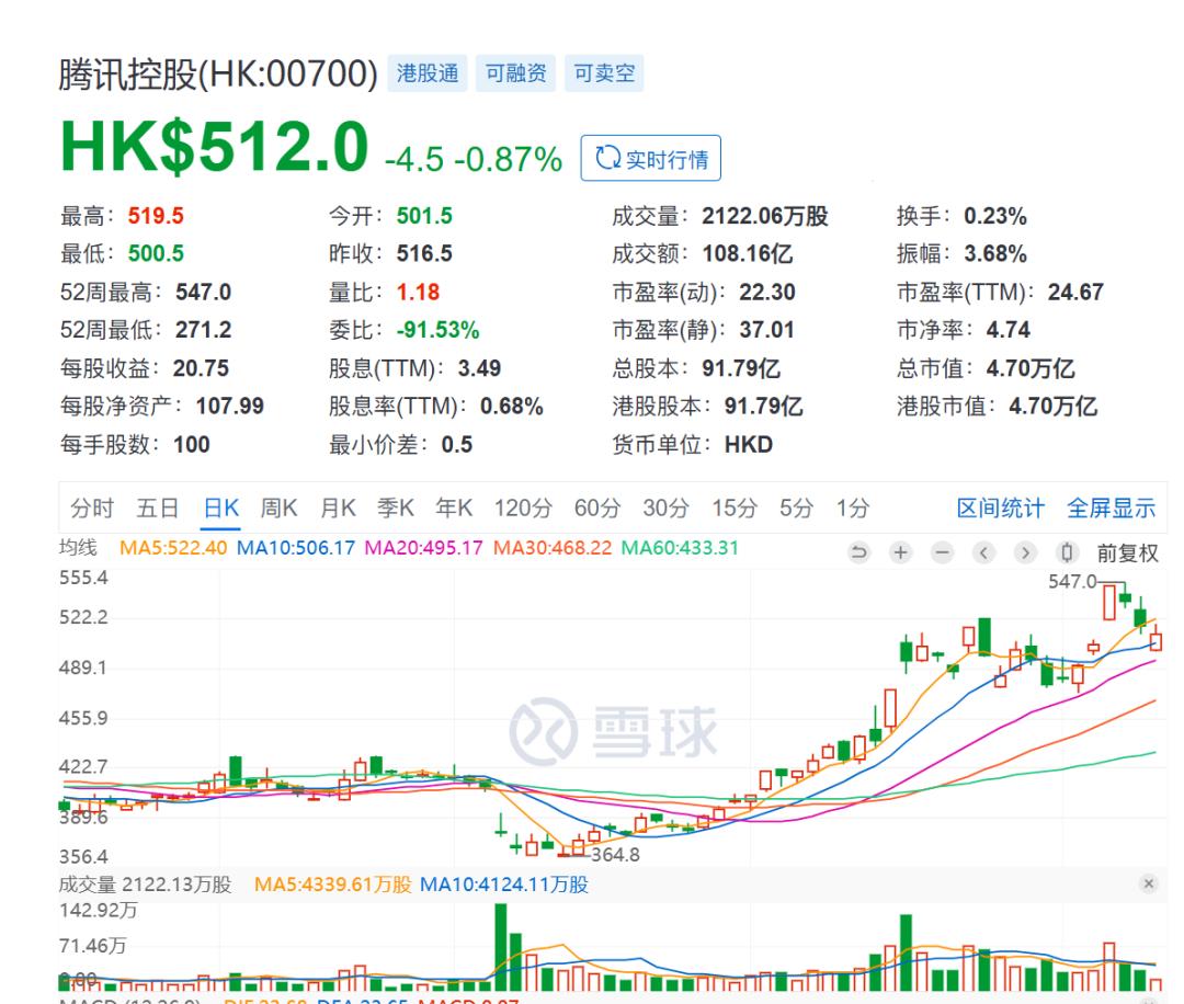 2月以来,受益于DeepSeek爆火和被苹果选中的消息,阿里巴巴港股股价累计上涨超40%,创下近三年新高。腾讯港股股价虽也大幅上涨,但表现不及阿里,同期股价仅上涨18%。但腾讯股价一度冲高至538港元,创下自2021年7月以来的新高,可以说腾讯正在走的趋势。