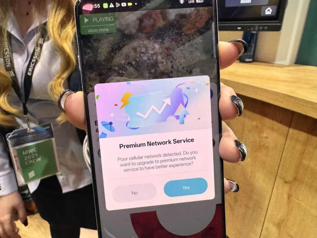 图:爱立信工作人员展示差异化连接服务案例。