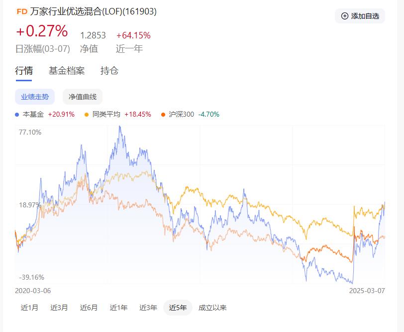 万家行业优选是黄兴亮自光大保德跳槽到万家基金后管理的第一只产品。自2019年初负责该基金运作以来,累计收益137.93%,其中2025年净值增长约42%,当期同类产品平均回报仅为7.97%。