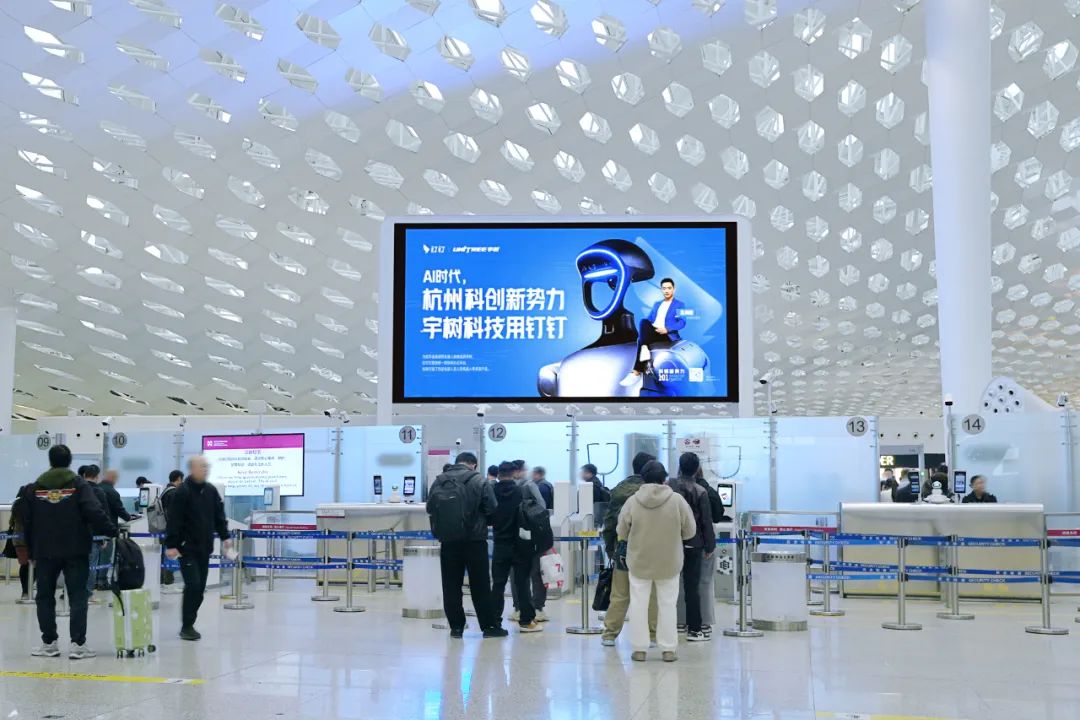 随处可见的机场广告牌前,杭州“七小龙”中宇树、强脑、云深处、Rokid的创始人海报,令众多过客驻足。