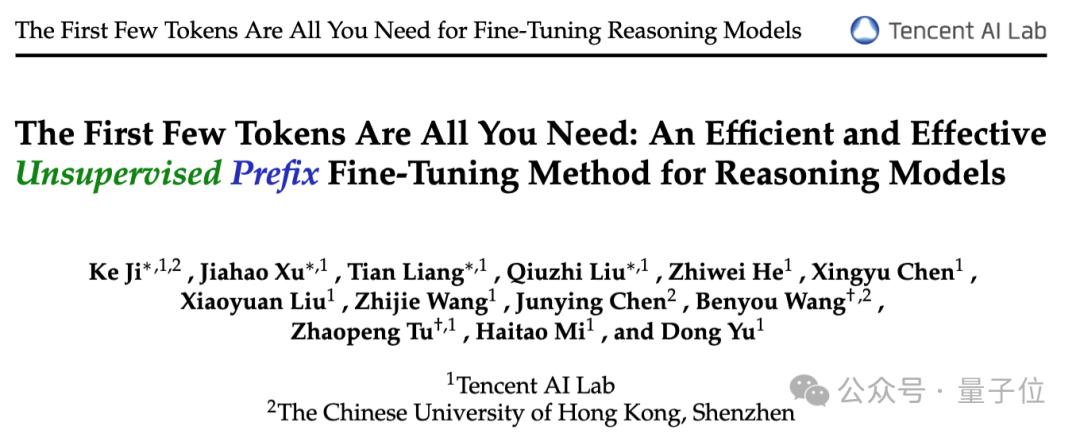 腾讯AI Lab与香港中文大学(深圳)合作开展了一项新研究,提出了这样一种名为无监督前缀微调(UPFT)的方法。