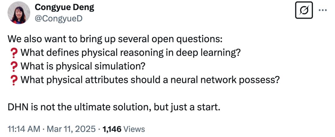 论文一作 Congyue Deng 发推表示,过去通过扩展卷积算子使其从低级图像处理上升到高级视觉推理,如今 DHN 可以通过扩展物理算子来实现更高级的物理推理。