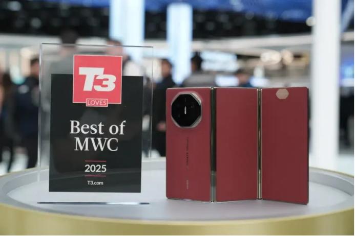 华为在MWC上带来了Mate70系列等,凭借红枫原色影像、AI运动轨迹、隔空传送等AI摄影功能上的创新,斩获YankoDesign、GearCulture等四家权威媒体授予的“BestofMWC”奖项。作为行业折叠手机标杆的全球首个商用的三折叠屏手机华为Mate XT也在展会上亮相,吸引了不少关注。