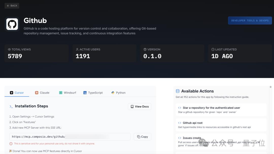 这套操作利用的是一个名为Composio的机构提供的MCP服务,在Cursor中可以通过链接直接配置。