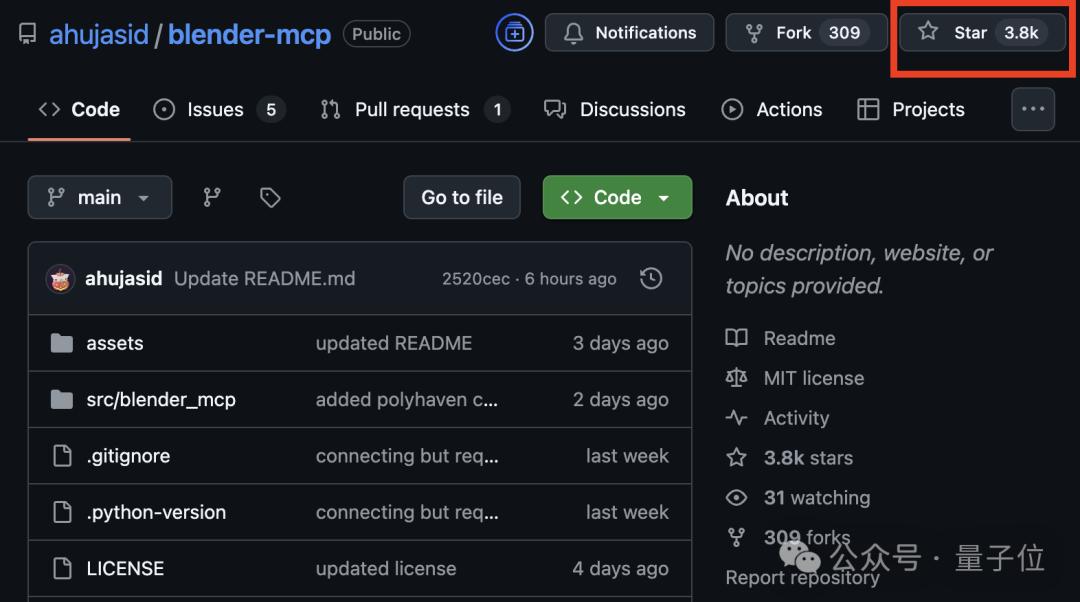该开源项目BlenderMCP,上线短短3天,GitHub标星已达3.8k。