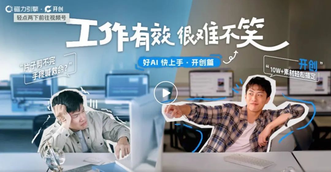为此,快手推出AI广告投放工具“磁力开创”,通过AI技术简化视频创意生产流程,包括对话式交互、可灵成片、剪同款和一键成片等,商家短时间内可以生成数百条适合在快手发布的素材。