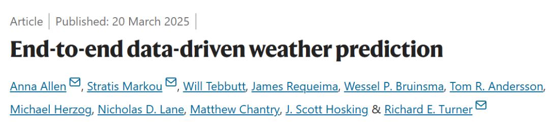 相关研究论文以“End-to-end data-driven weather prediction”为题,已发表在权威科学期刊 Nature 上。