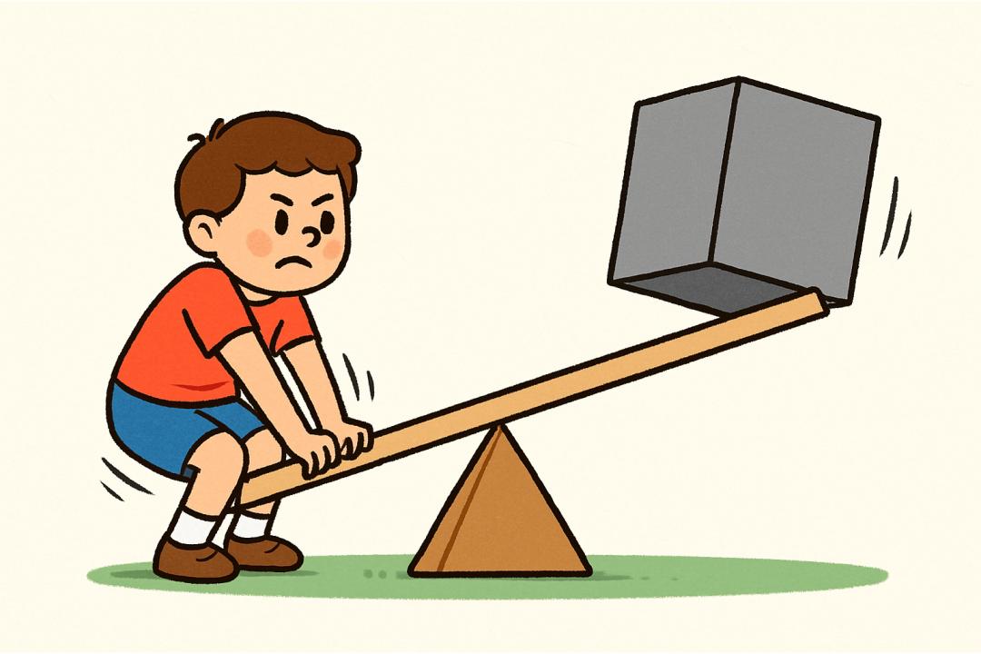 一个是杠杆定律:生成一张图,一个小孩在跷跷板上,通过杠杆原理把一个重物抬起来。小孩用力往下压,重物被抬高,体现杠杆原理。背景简单,比例4:3。