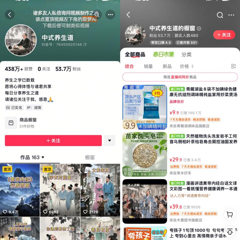 “当初也是看到网上说中式养生受众广,又是当下潮流,很容易带货,从食材到日常用品再到书籍,可供选择的品类多,佣金也高,我才转型做的。可实际这些视频内容或许能吸引粉丝观看,却不太能激发他们去购买商品,转化率还没有我之前做好物分享高。”