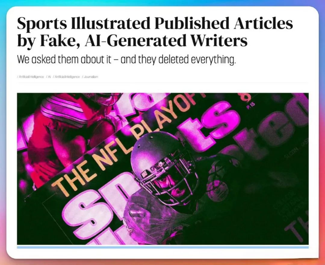 “3月份乌拉圭和阿根廷的比赛,梅西都没上场,国内某知名体育垂直媒体平台发布的半场战报就有‘梅西通过灵活跑位为球队创造机会’的这种表述,疑似是用AI提前写的。日常搜集资料的时候,我也在大平台上看到过AI生成的莫须有新闻战报。”知名体育自媒体博主碧波介绍。