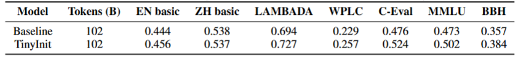 ,能加速 loss 收敛并提升下游任务性能。TinyInit 能使模型各部分的参数尺度更加一致,从而有利于优化和收敛(见模型结果与分析)。