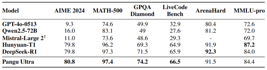Pangu Ultra 在 Reasoning Benchmarks 上的表现