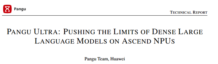 技术报告标题:Pangu Ultra: Pushing the Limits of Dense Large Language Models on Ascend NPUs