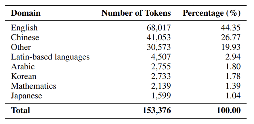 对通用中文、通用英文、代码、数学等多个关键领域的数据独立进行词频分析,生成领域专属词汇表。