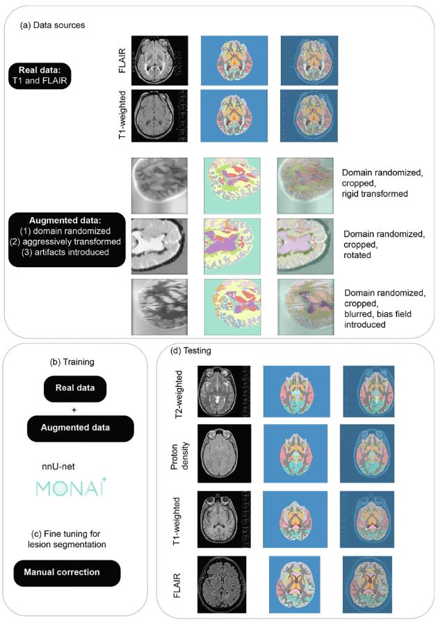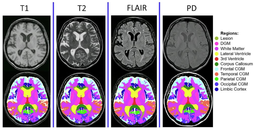 * 即使使用有限的 MRI 数据和通常不用于这些任务的单对比,也可以实现具有临床意义的组织分割和病变量化