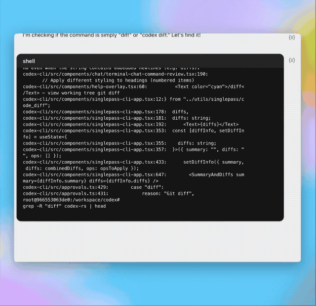 任务完成后,Codex 会输出一整套可追溯的执行结果,包括终端日志、测试记录等验证信息。你可以对修改结果进行审查、提出建议,甚至直接在 GitHub 上发起 PR,或者合并进本地项目。