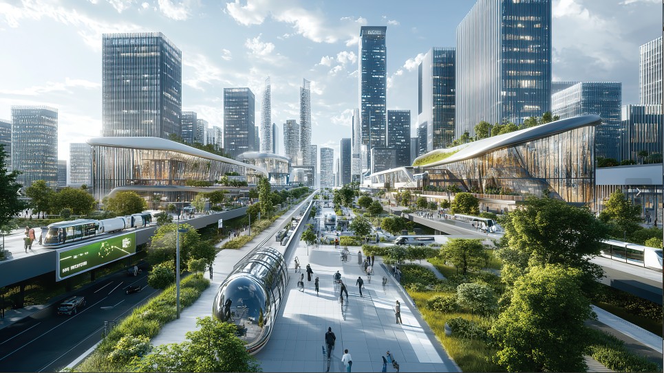 设计需要充分体现AI新技术在未来城市的应用与创新。将智能技术融入到城市的各个方面,构想AI+未来交通体系、AI+未来社区与居住场景、AI+公共设施系统、AI+产业生态体系、智能绿色能源体系、智慧基础设施系统等。