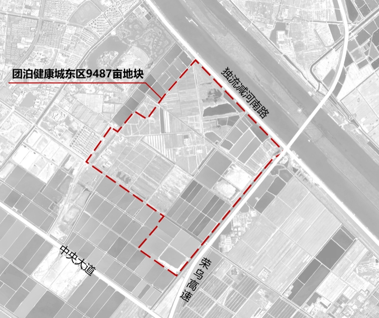 本次大赛以团泊健康城东区9487亩地块为载体,北至独流减河南路,东至荣乌高速公路,南至泽水北路,西至中骏云景台东边界,开展整体概念规划。