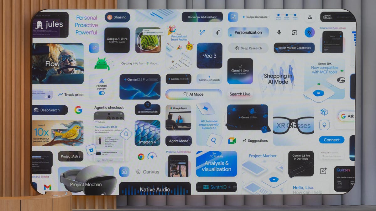 众多令人瞩目的AI新功能需通过特定订阅级别方可获得。AI Pro实为Google每月20美元Gemini Advanced计划的更名版(新增部分功能),而Google AI Ultra则是一个更为昂贵的全新选项——每月250美元(目前前三个月半价),提供对所有最新、最酷、限制最少的工具和模型的访问权限,以及用于管理AI代理的原型和30TB存储空间。这些服务今日已全面上线。